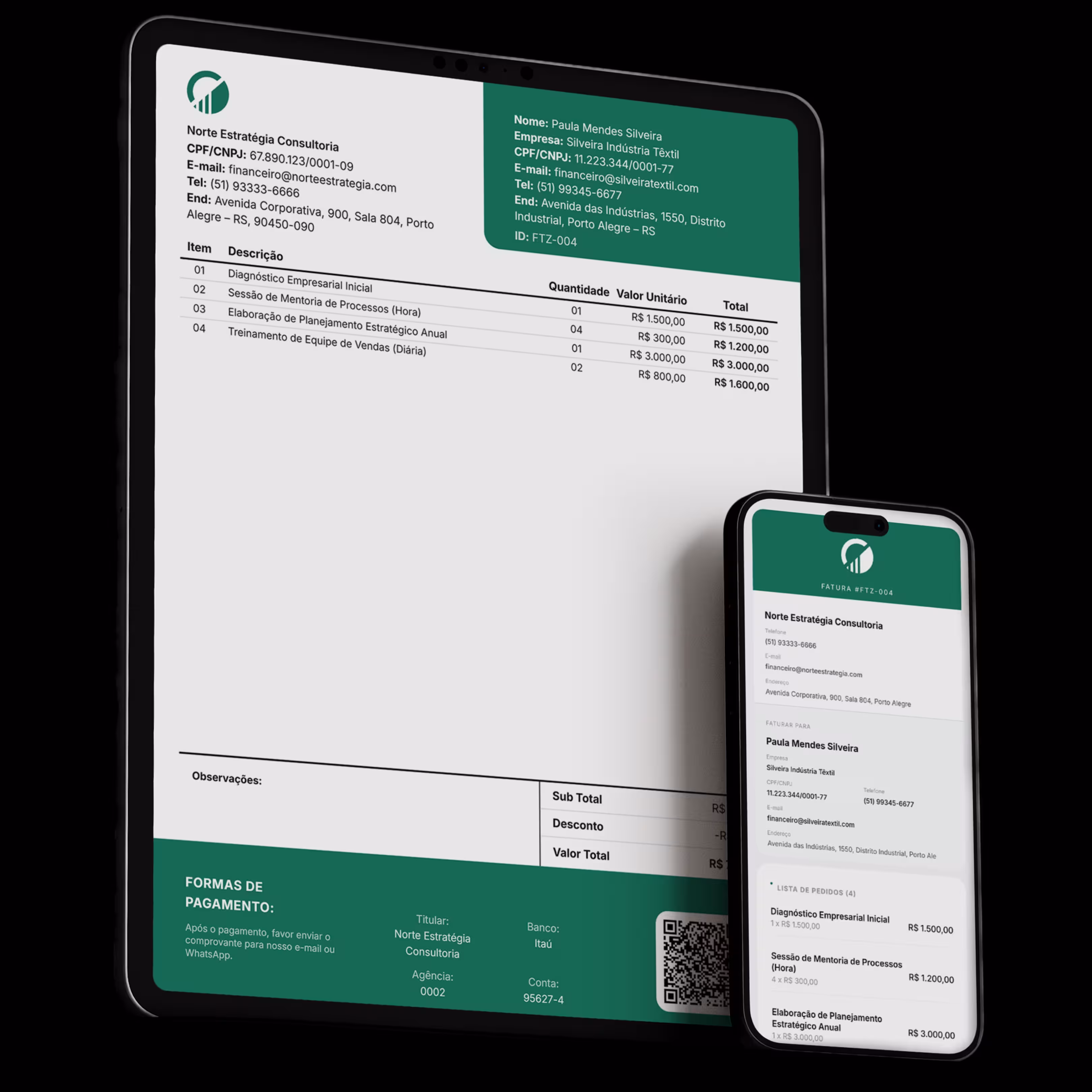 Gere faturas, envie orçamentos e